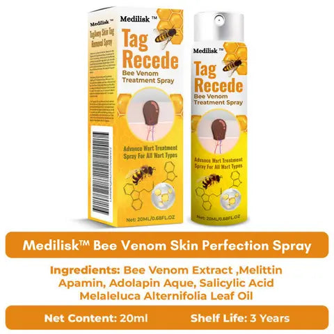 The Bee Venom Skin Perfection Spray is the solution to harness the potent properties of bee venom to effectively target various skin imperfections, including skin tags, moles, warts, and spots. Infused with active compounds extracted from bee venom, this advanced formula breaks down and gently removes unwanted growths.