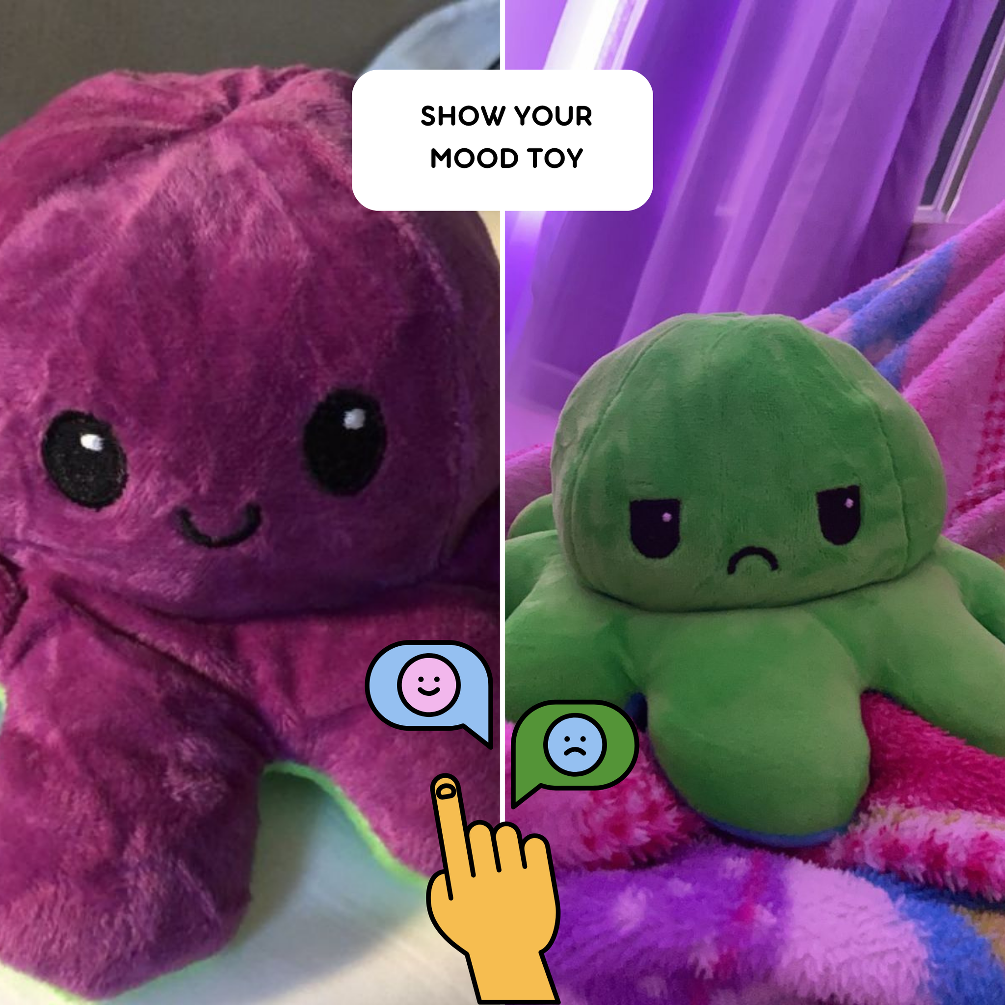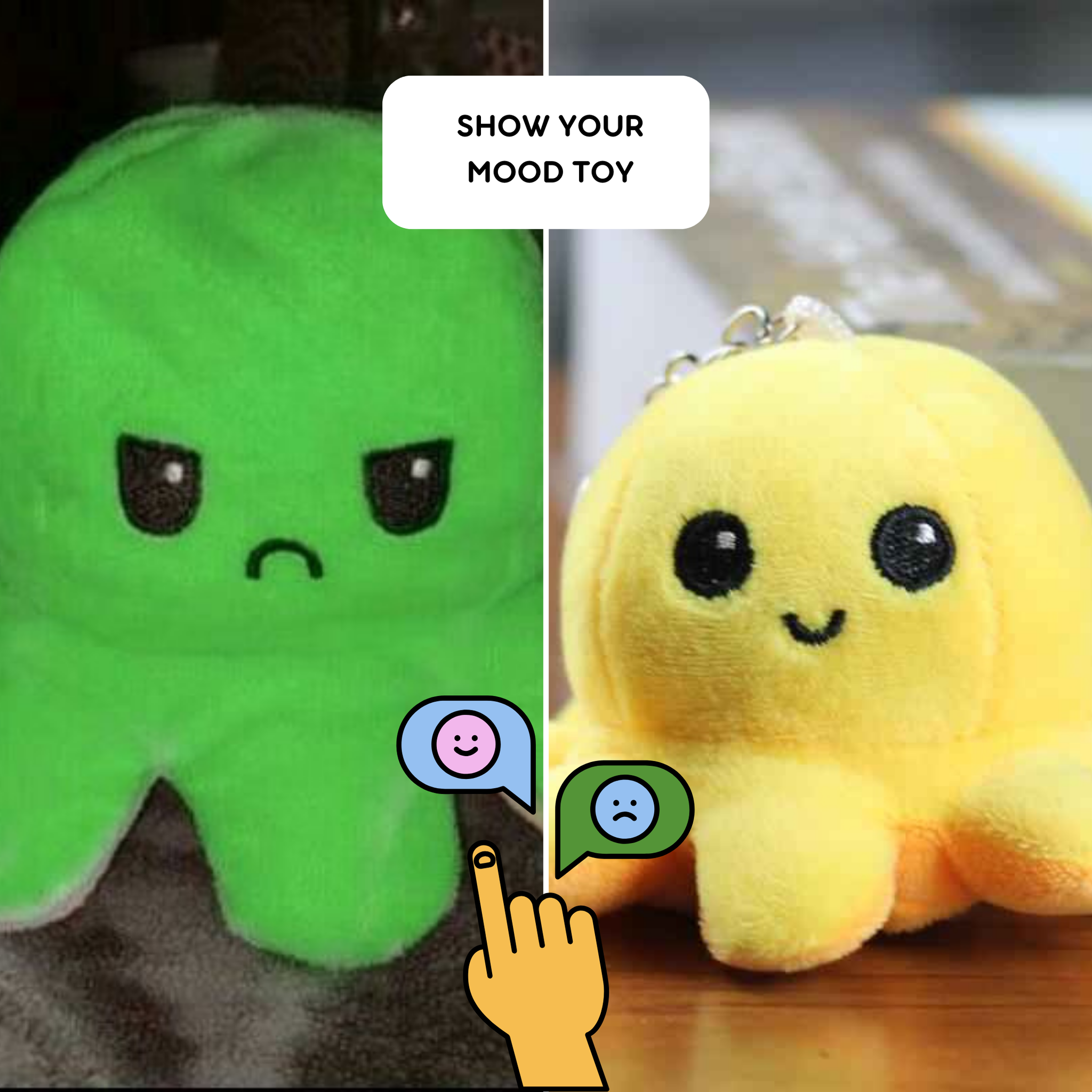 - Flip between happy and grumpy faces in seconds to show how you feel without saying a word.